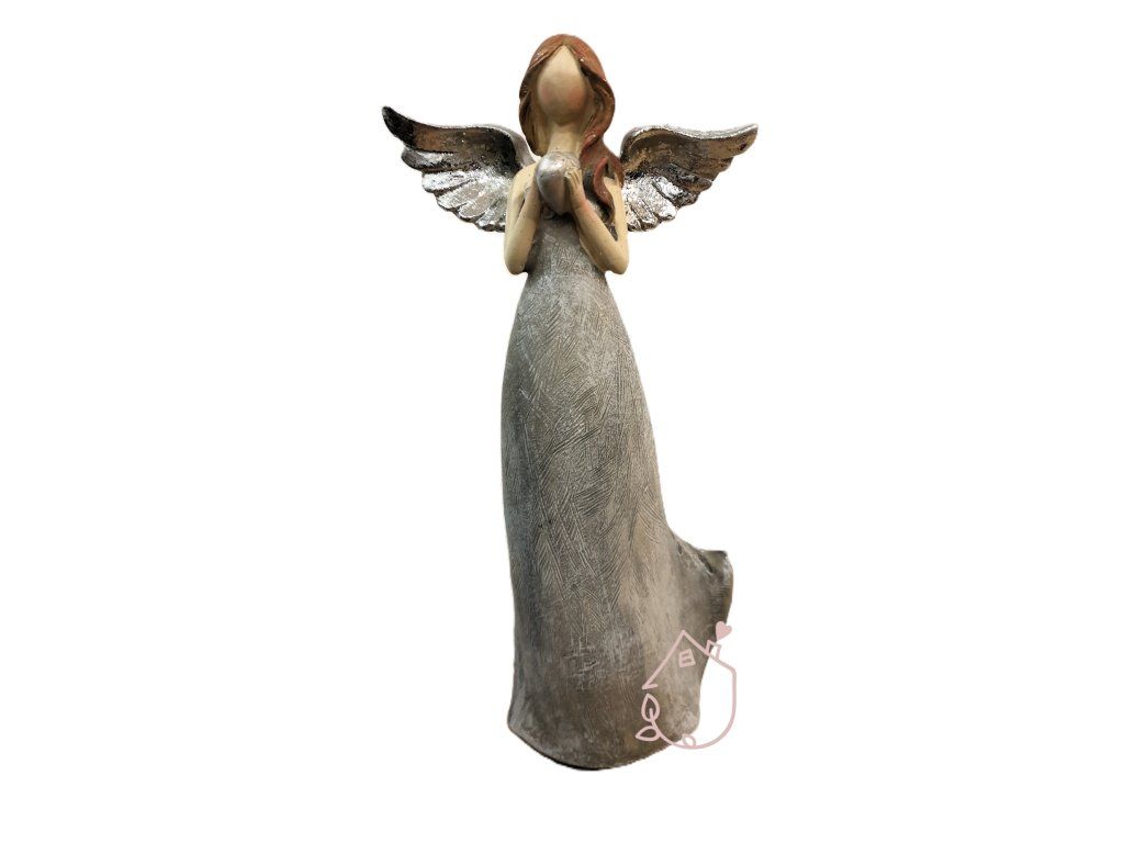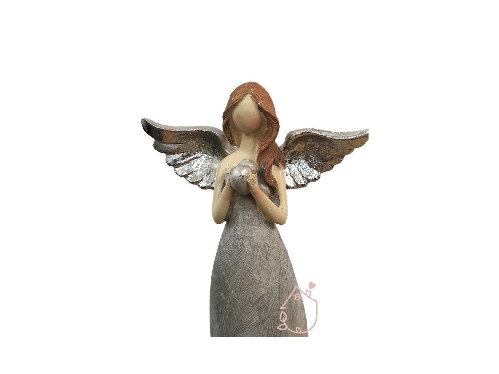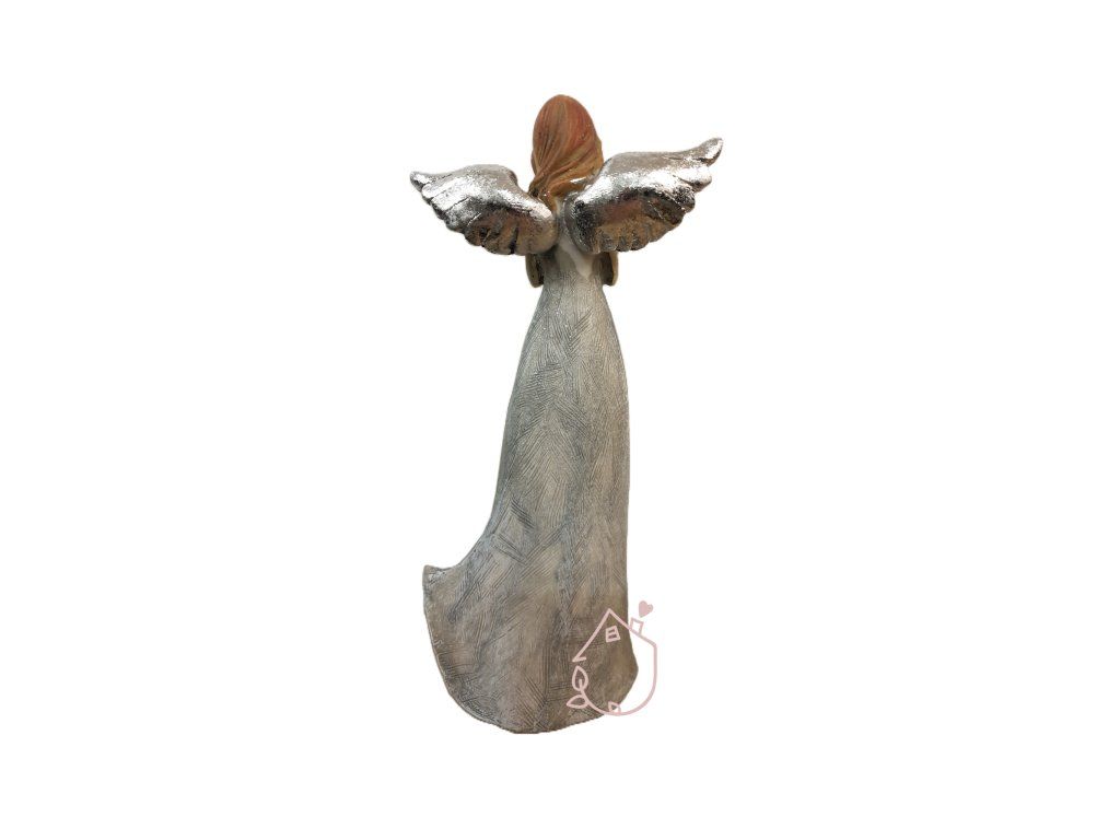 Dekorační anděl v barevné kombinaci šedé a stříbrné