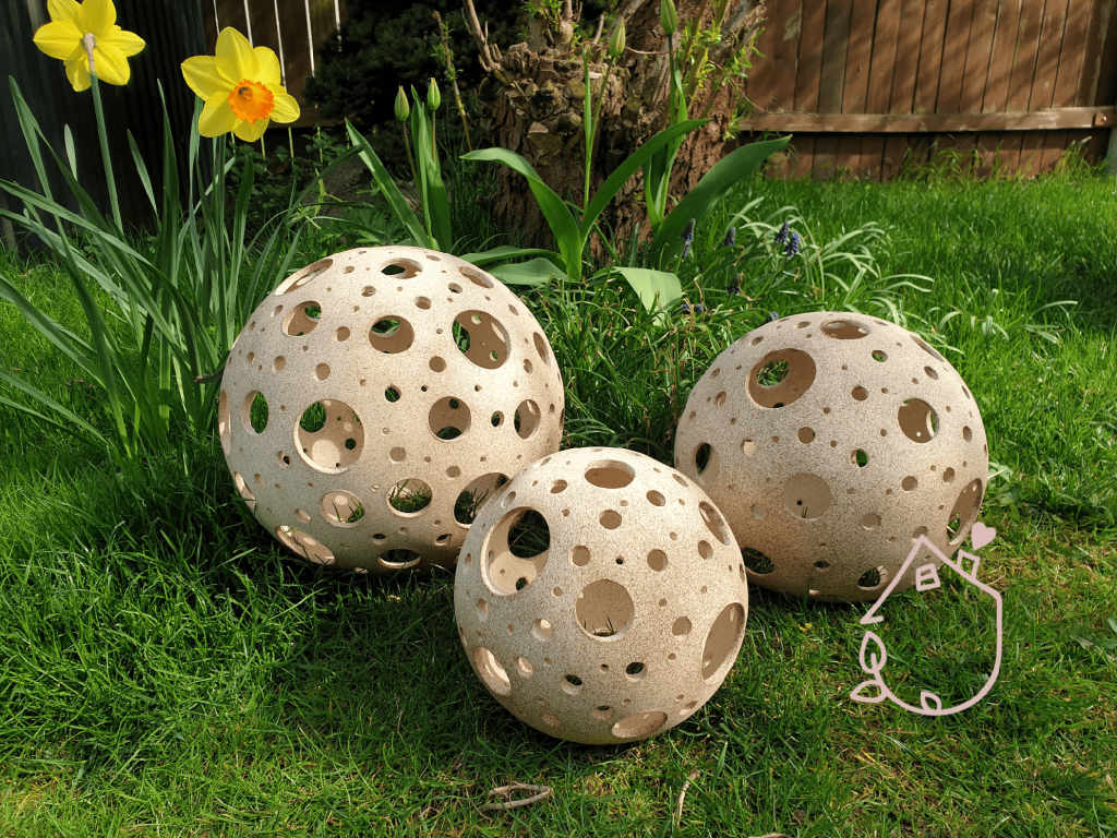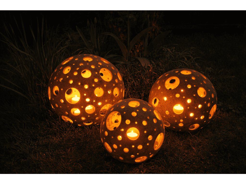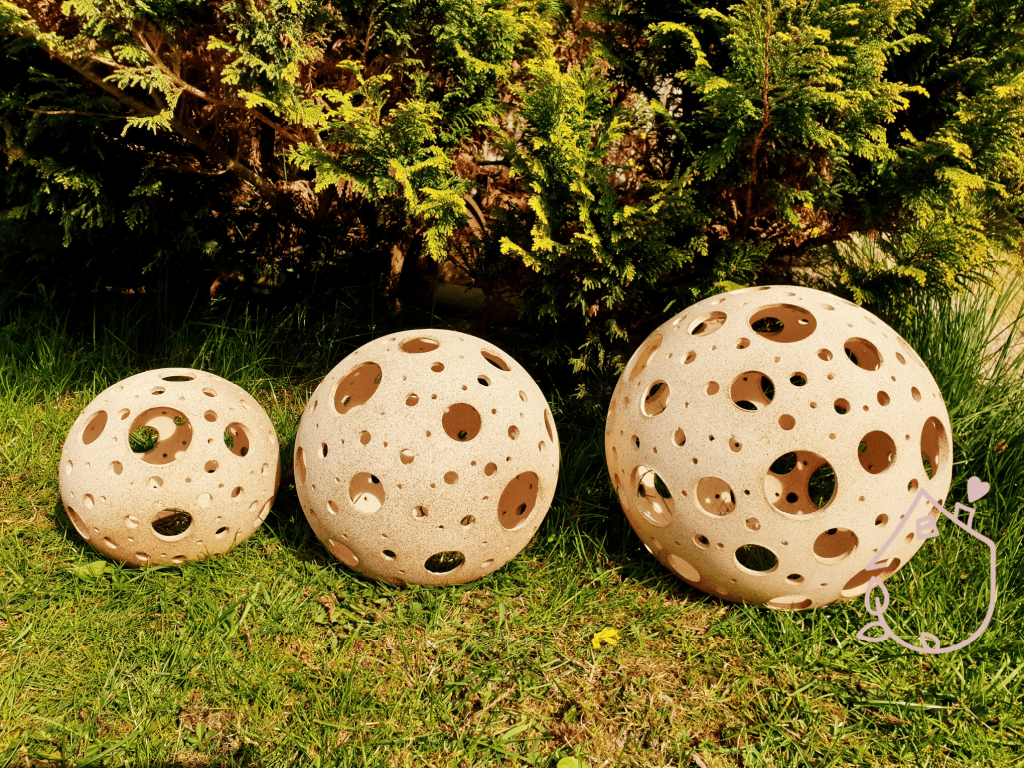 Sada 3 keramických koulí z mrazu odolné keramiky, do kterých můžete vložit svíčku a mít zajímavý světelný efekt ve vaší zahradě nebo na balkónu.