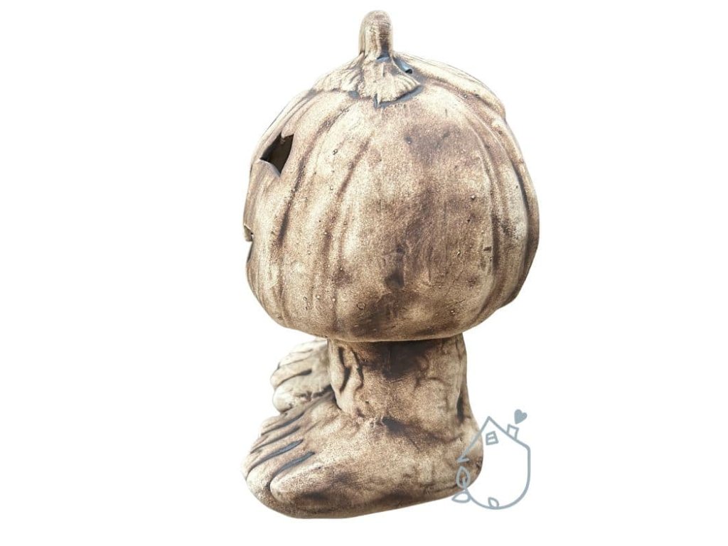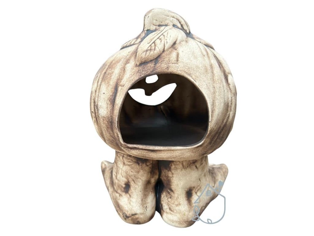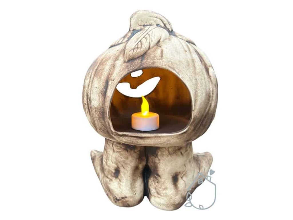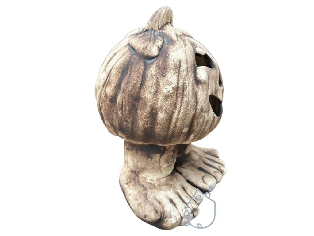 Keramická dýně na nožičkách, můžete do ní vložit svíčku a ona na vás bude v noci ze zahrady strašidelně svítit.