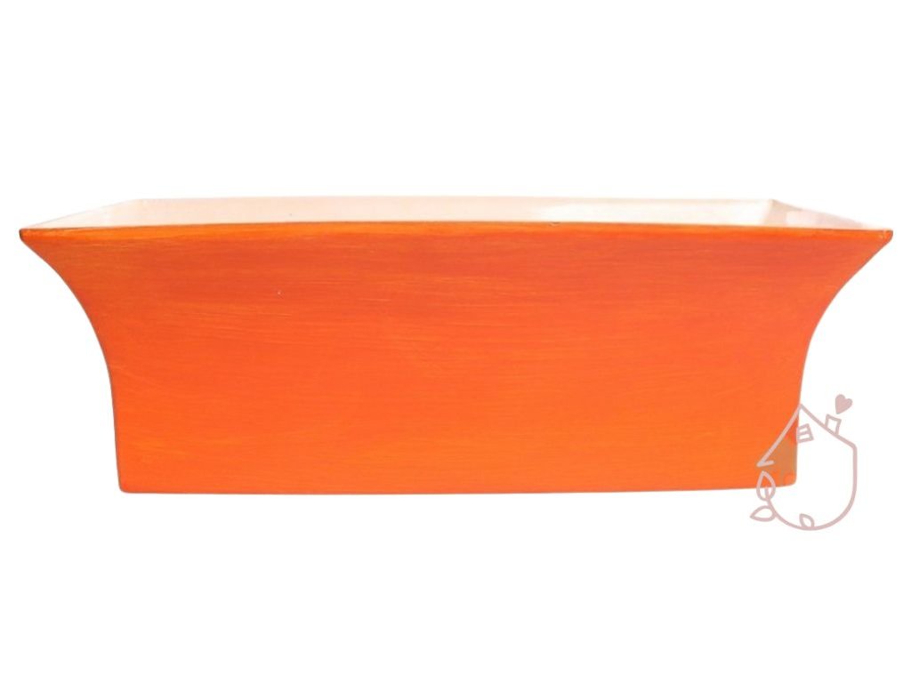 Oranžový truhlík je vyrobený z odolné keramiky, ale na zimu je zapotřebí ho schovat do sucha.