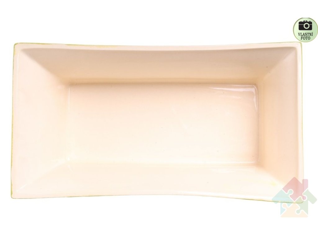 Truhlík je vysoký 12 cm, dno má 29 x 13 cm a horní otvor 35 x 19 cm.