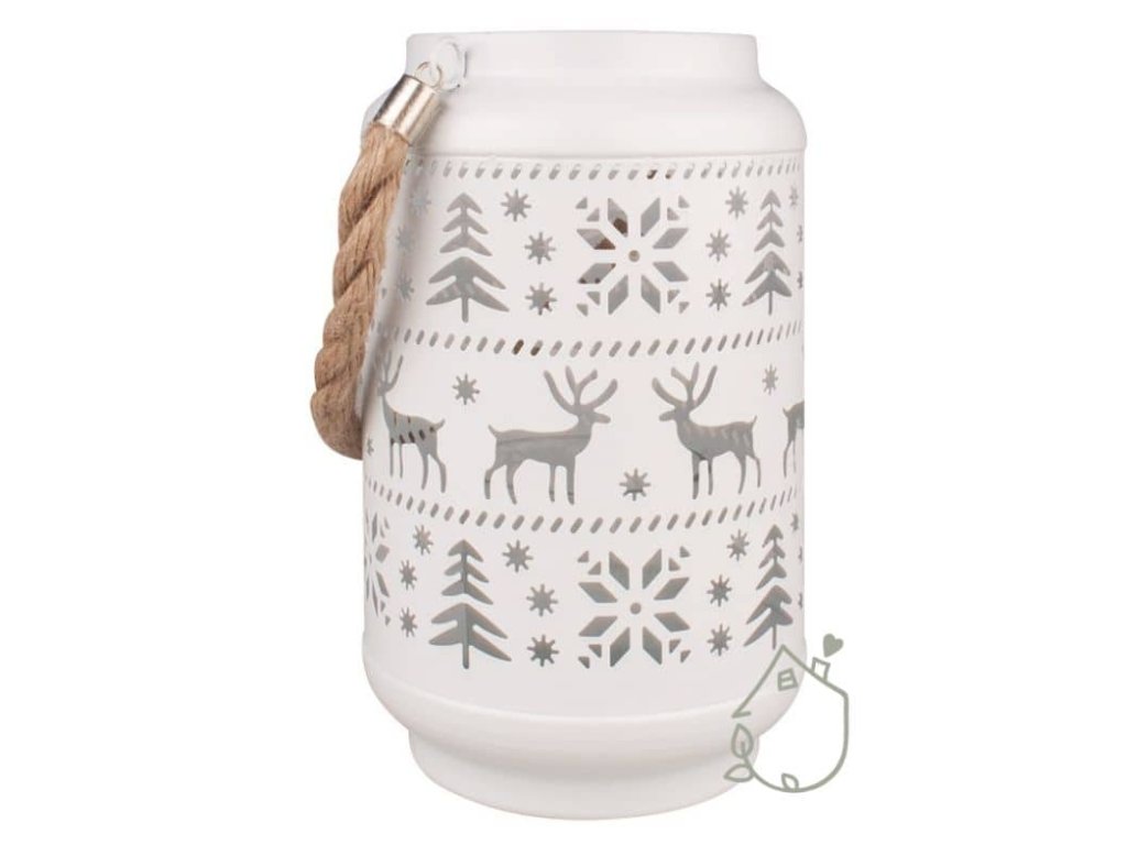Plechová lucerna s jeleny se skleněným válcem na svíčku