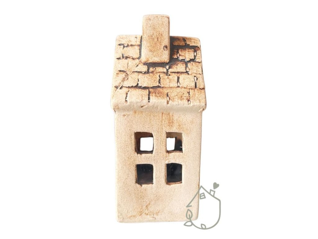 Svícen domek vysoký 14 cm keramický hnědý