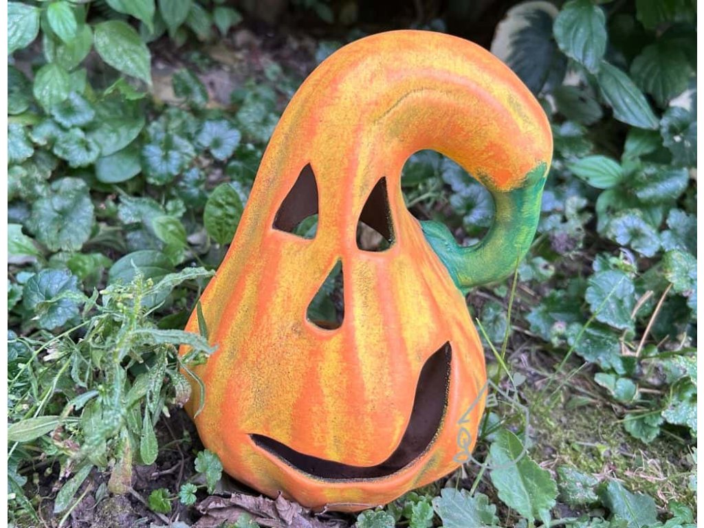 Dýně je vyrobená z mrazu odolné keramiky. Je vysoká 19 cm.