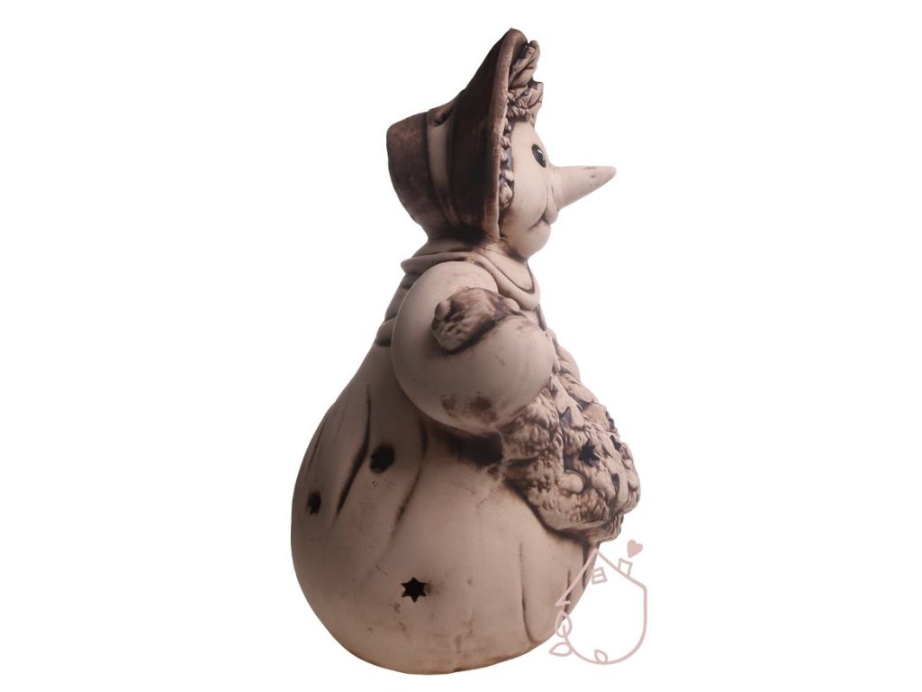 Keramická sněhulačka může stát na vaší zahradě celou zimu, je totiž vyrobená z mrazu odolné keramiky.