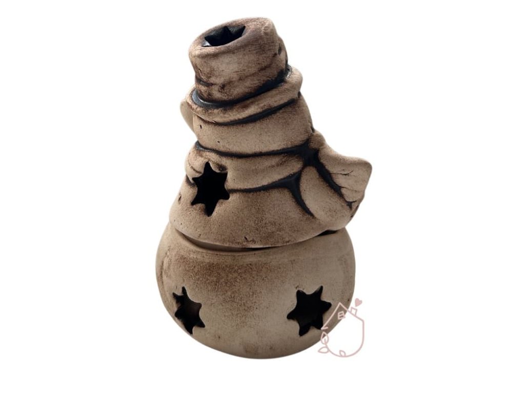 Malý roztomilý sněhulák, do kterého vložíte čajovou svíčku a on vám za odměnu vyčaruje kouzelné hvězdičky světel.
