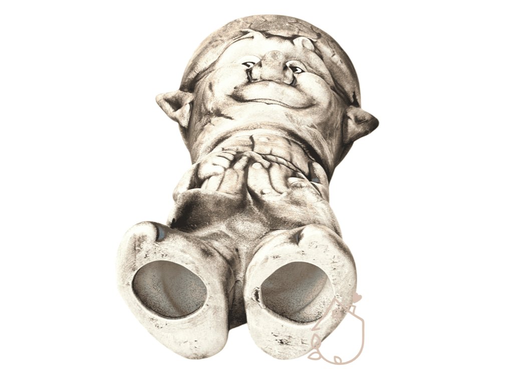 Keramický trpaslík má šibalský výraz .