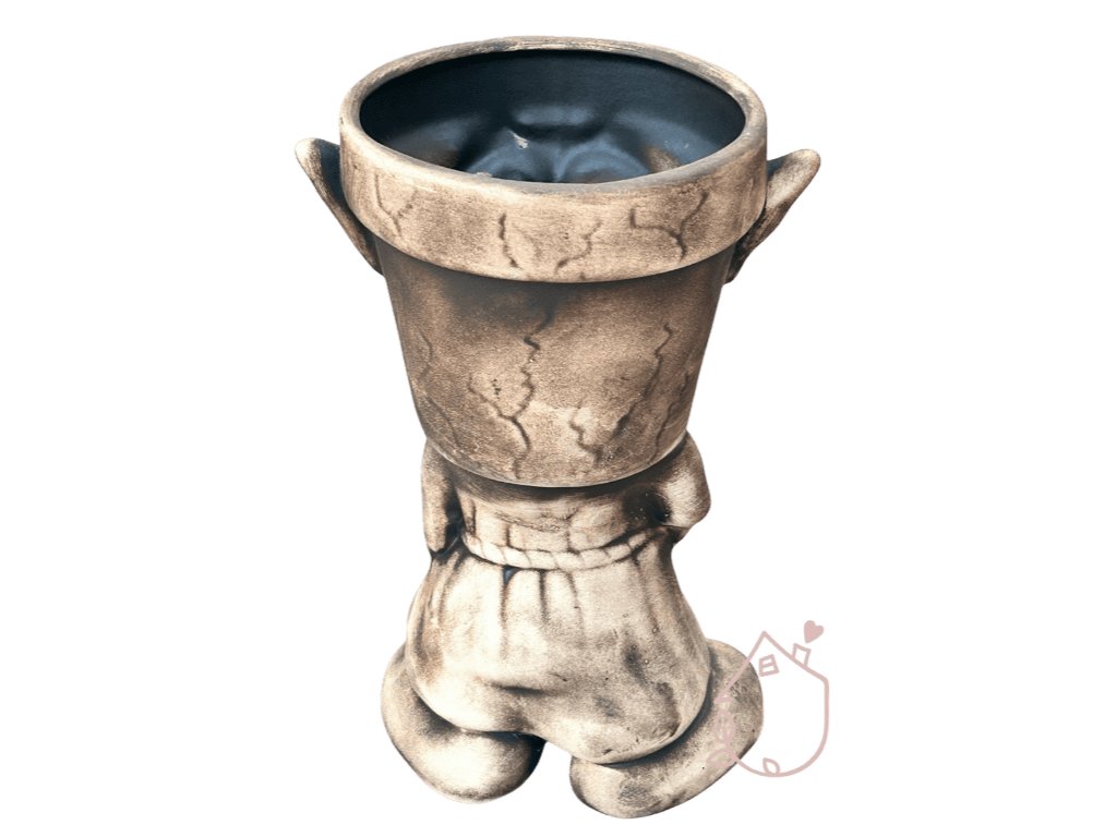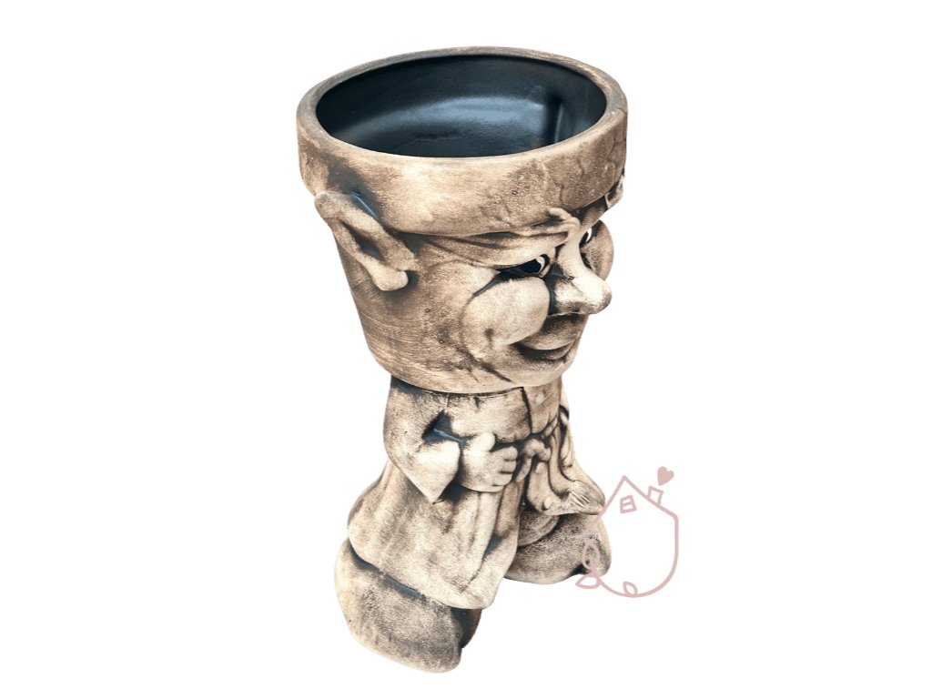 Trpaslík je vysoký 25 cm, široký 18 cm a hluboký 14,5 cm. Samotný květináč je vysoký 13 cm a horní otvor má vnitřní průměr 11,5 cm.
