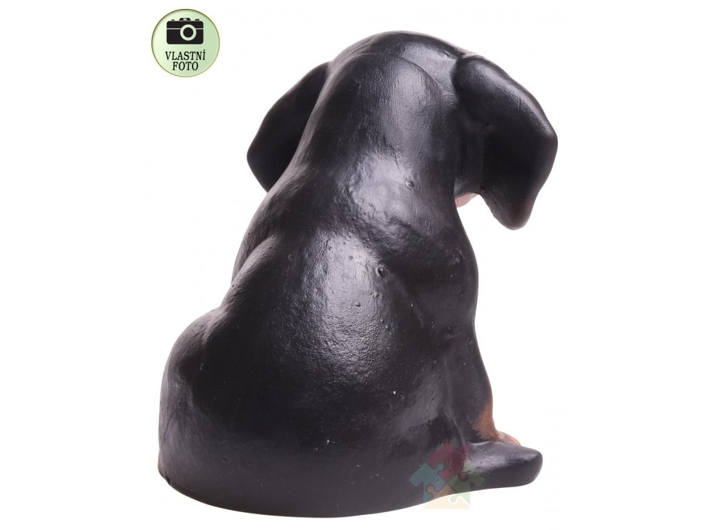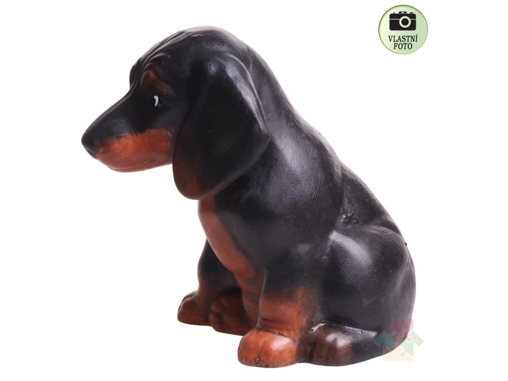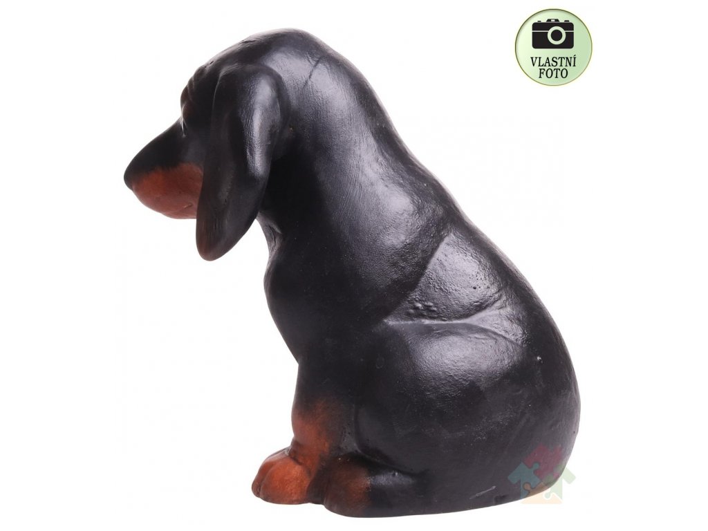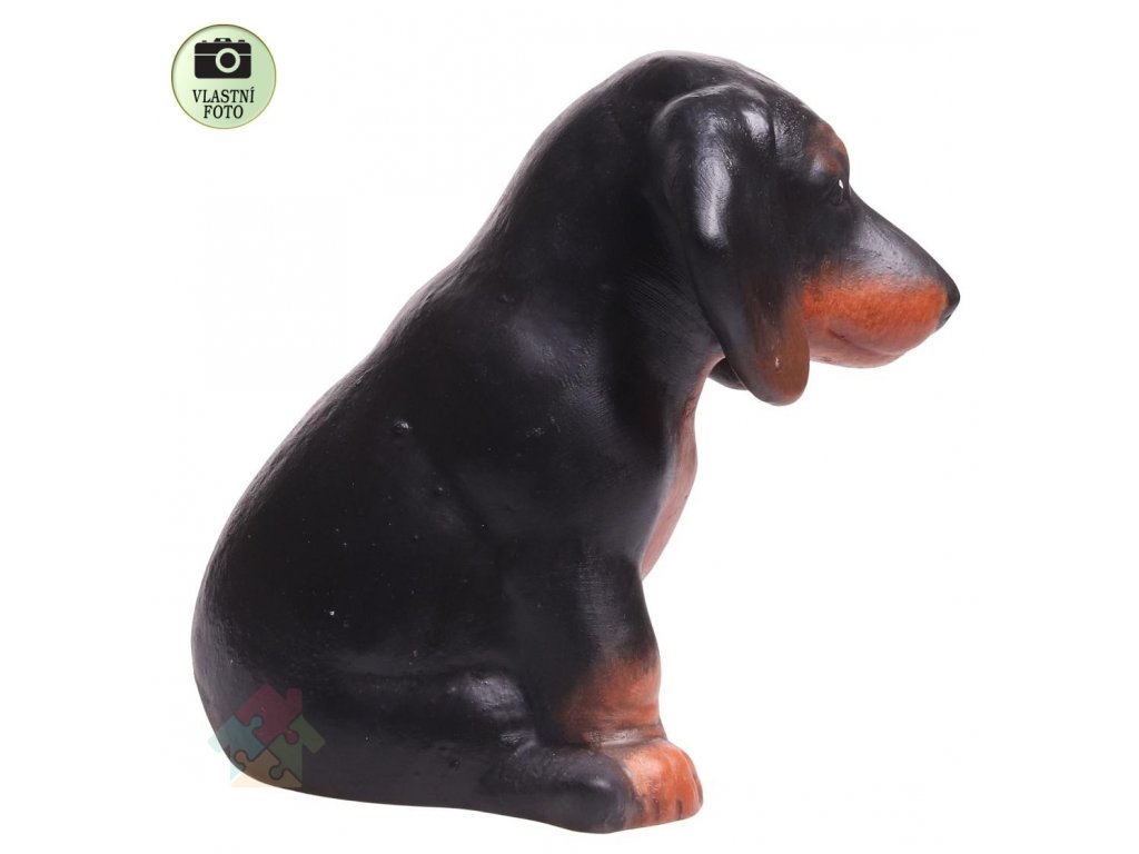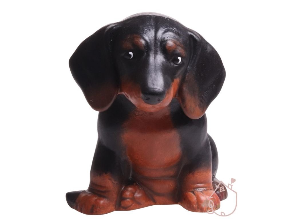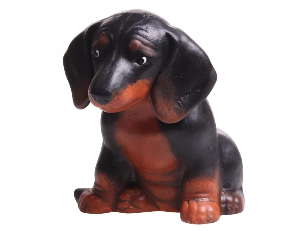 Keramické štěně jezevčíka v černo hnědém provedení oživí vaši zahradu, ale bude mu to slušet i třeba v rohu vašeho balkónu.