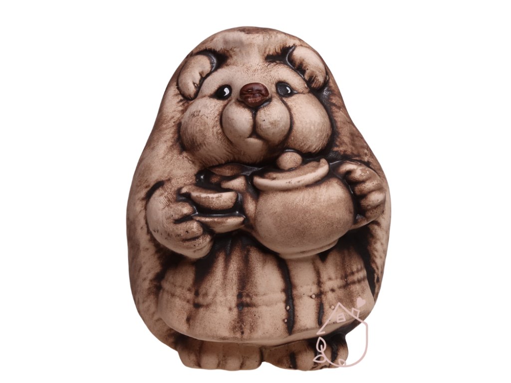 Ježčí paní s výraznou konvičkou a šálkem se může stát dekorací ve vaší zahradě nebo i doma.