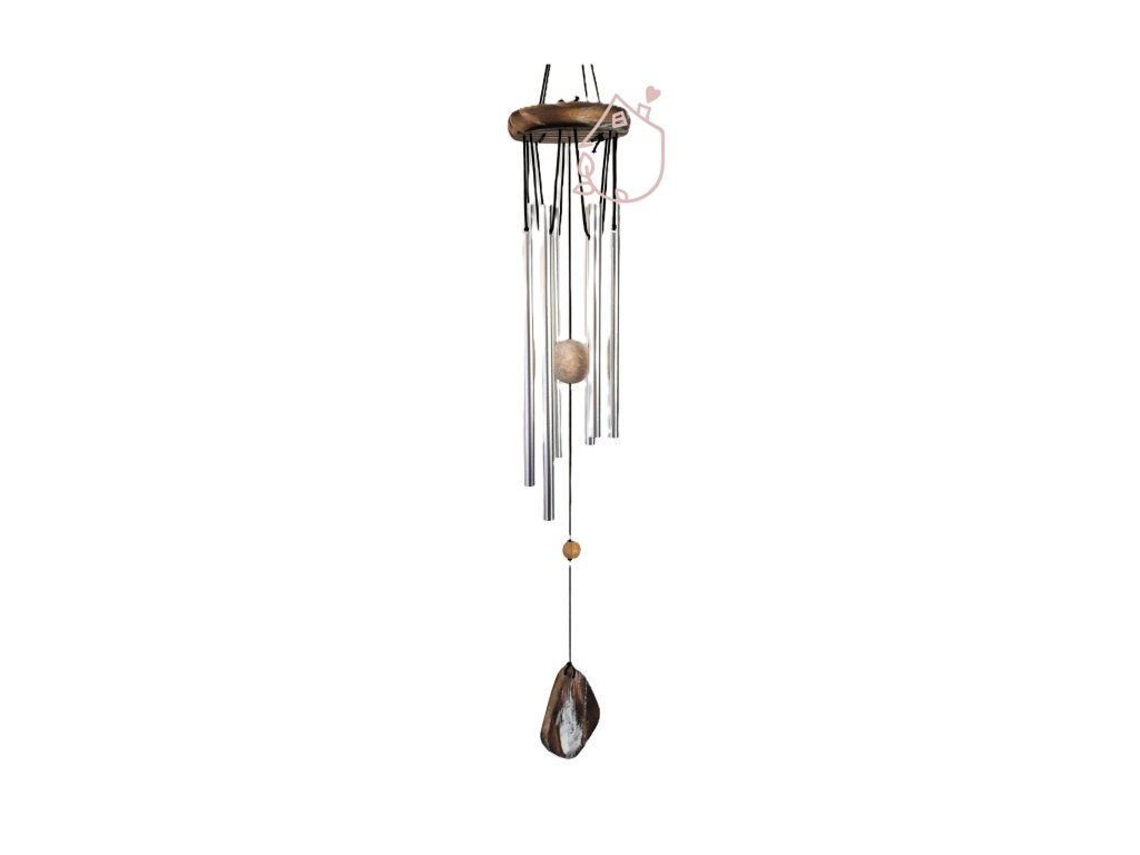 Tato malá závěsná zvonkohra vytvoří dekoraci v každém prostoru. Hodí se na terasu i do obývacího pokoje. Díky kombinaci dřeva a kovu vydává velmi příjemný zvuk, který dodá pozitivní náladu a atmosféru. Zvonkohra je lehká a snadno se zavěsí pomocí háčku.